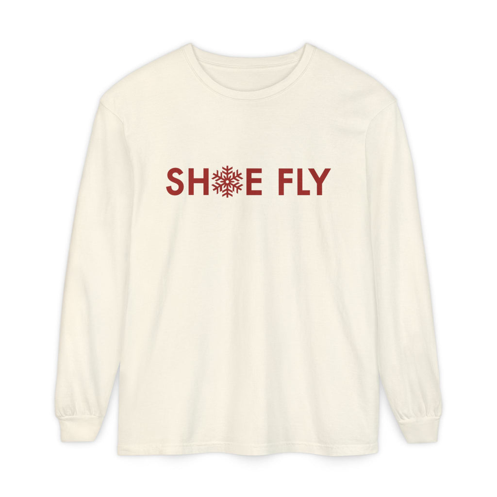 Soft, comfortable, and perfect for all your holiday outings—from gift shopping to cozy gatherings—this tee blends tradition, comfort, and a little seasonal sparkle. A joyful way to share the Shoe Fly spirit all winter long.